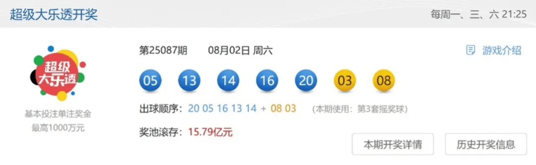 足彩,体彩,彩票,体育彩票,足球彩票,彩票合买,竞彩,快三,时时彩,六合彩8月2日,超级大乐透第25087期开奖。前区开出号码05、13、14、16、20;后区开出号码03、08。